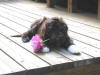 Trixie is no longer the sleepy puppy but a playful companion